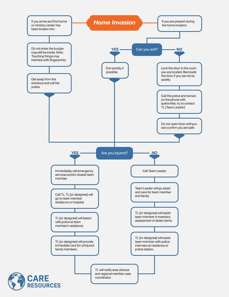 We have a trained team of Global Workers and staff who are ready to step in during a crisis and walk both our workers, their families, and the organization through that crisis to its resolution – no matter how long that takes. This Crisis Management Team (CMT) is activated by your leadership and fully supported and resourced by the organization. You will not be forgotten and you will not be alone.